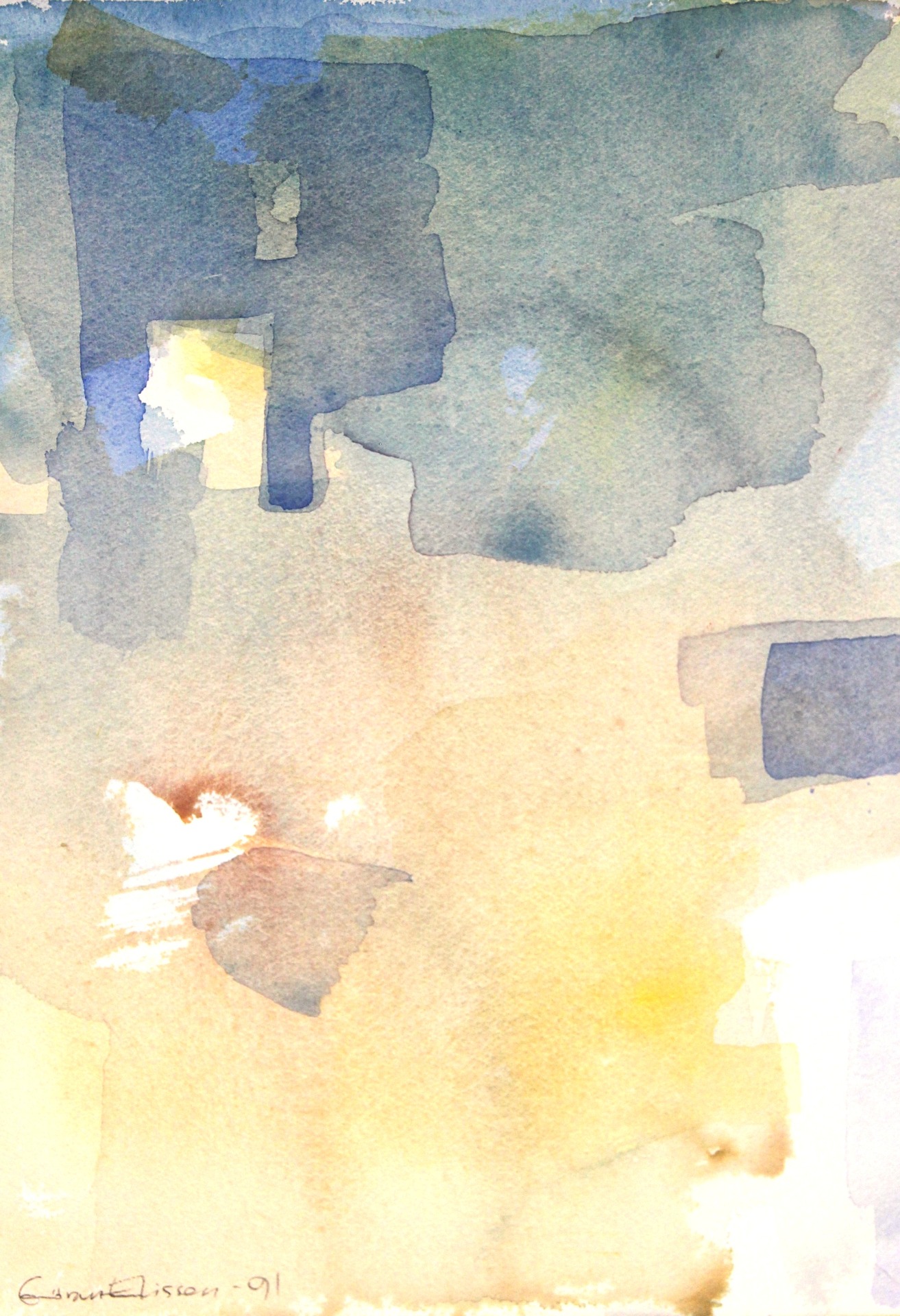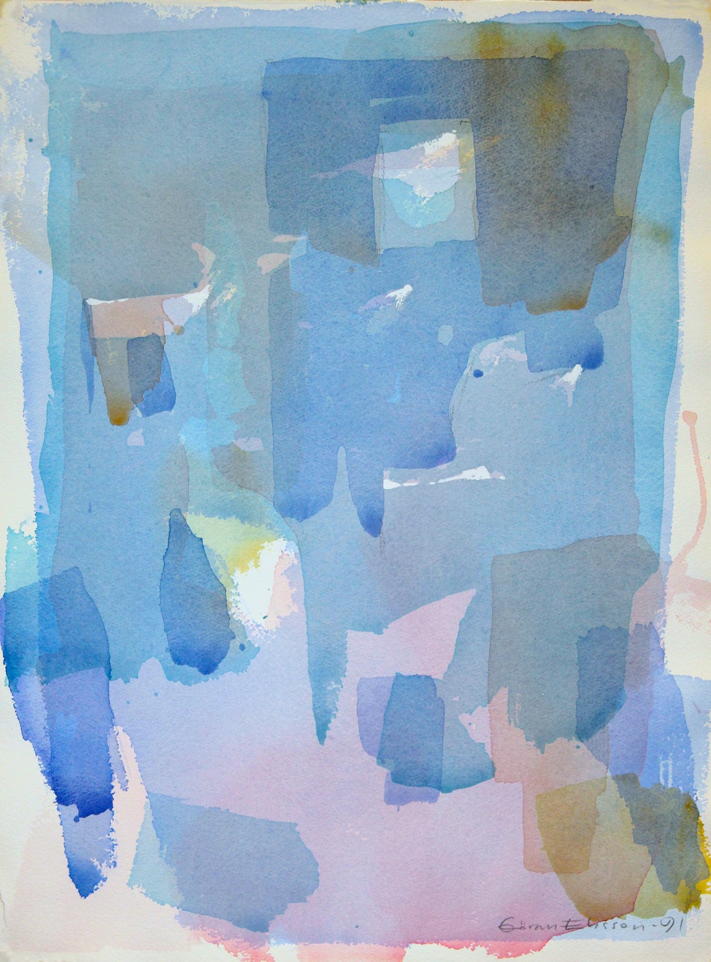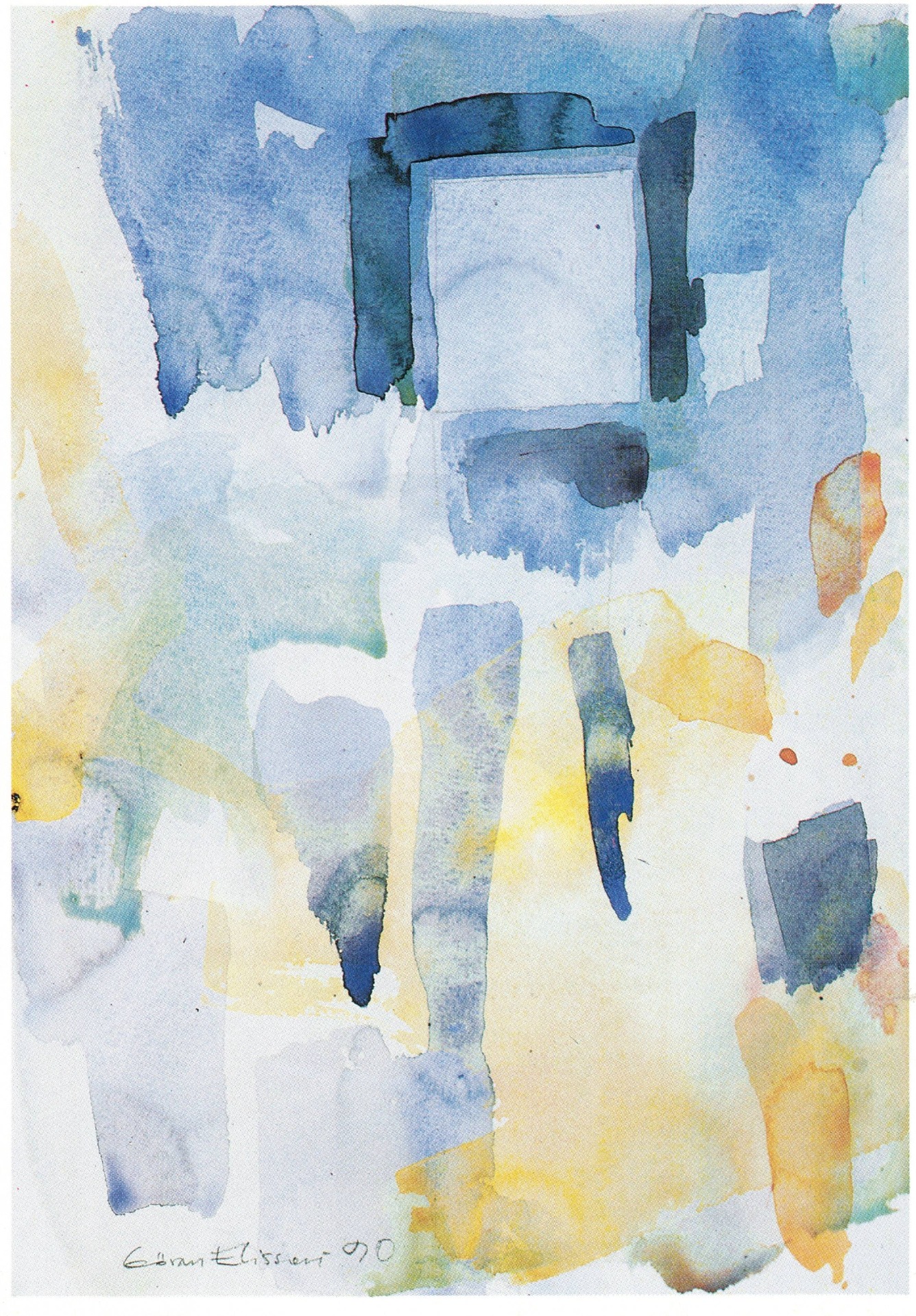 Vårt hus var precis färdigbyggt, ett passivt solhus, med nästan alla fönster mot söder, stora glas, mycket ljus. Bra med isolering och djupa fönsternischer. Ett underbart tema kände jag. En svit med akvareller på fint och slätt Hahnemuhlepapper.